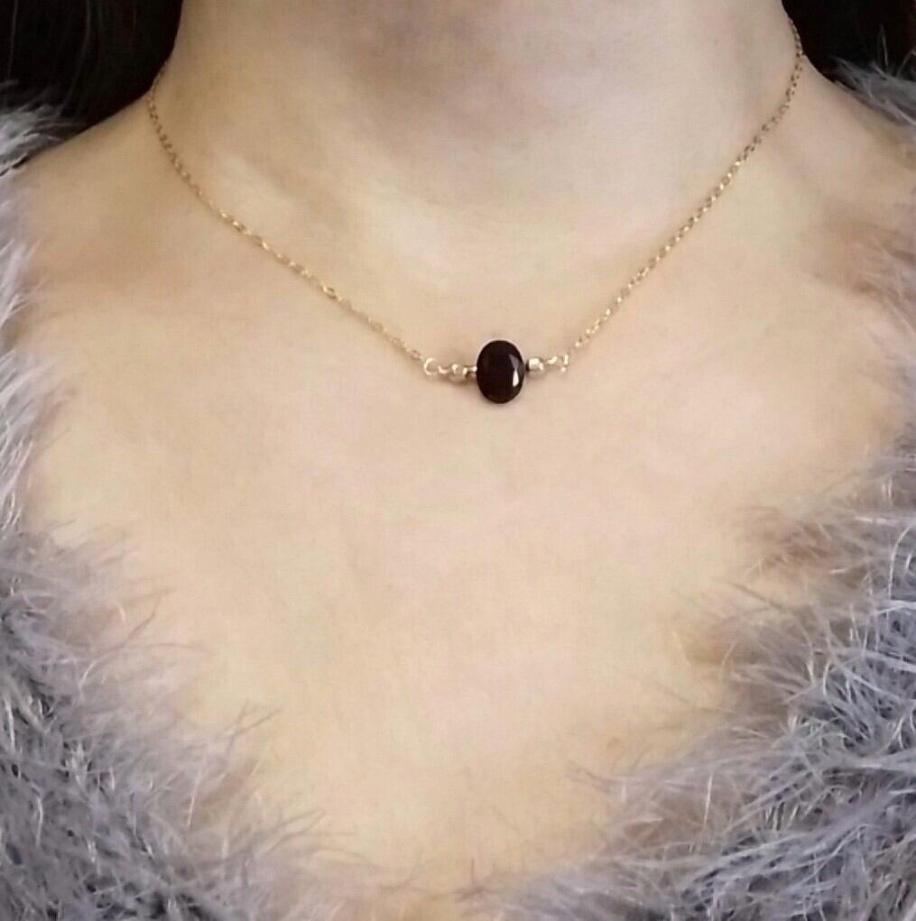 ラウンドのブリリアンカットされた天然石ガーネットのネックレスです♪
