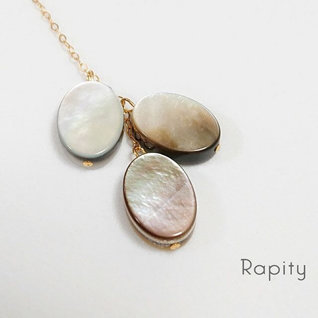 黒蝶貝、シェルパーツを14kgfのチェーンで合わせた大人可愛いデザインの揺れるノンホールピアスです。