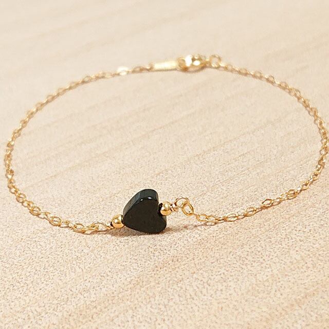 14kgf 天然石オニキス ハート型 チェーンブレスレット