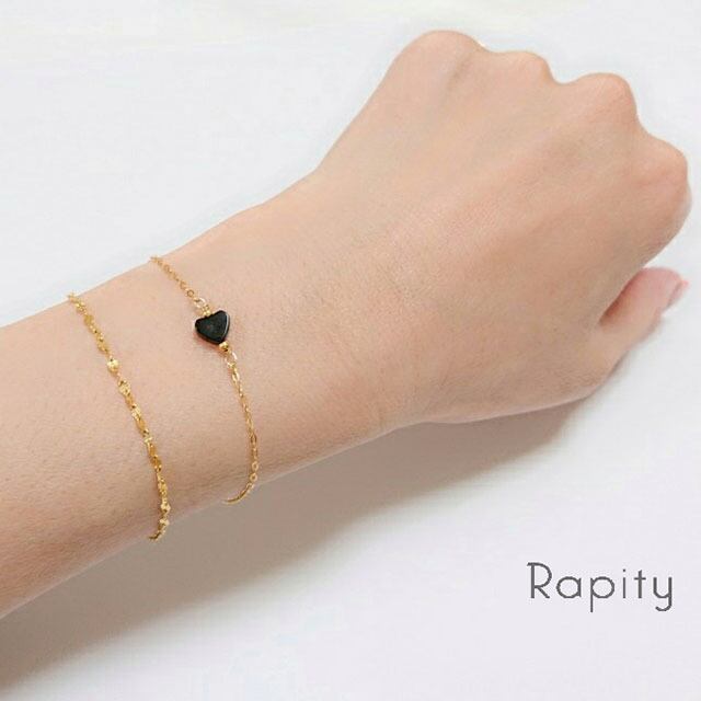 シンプルな天然石オニキス ハート型のチェーンブレスレットです♪