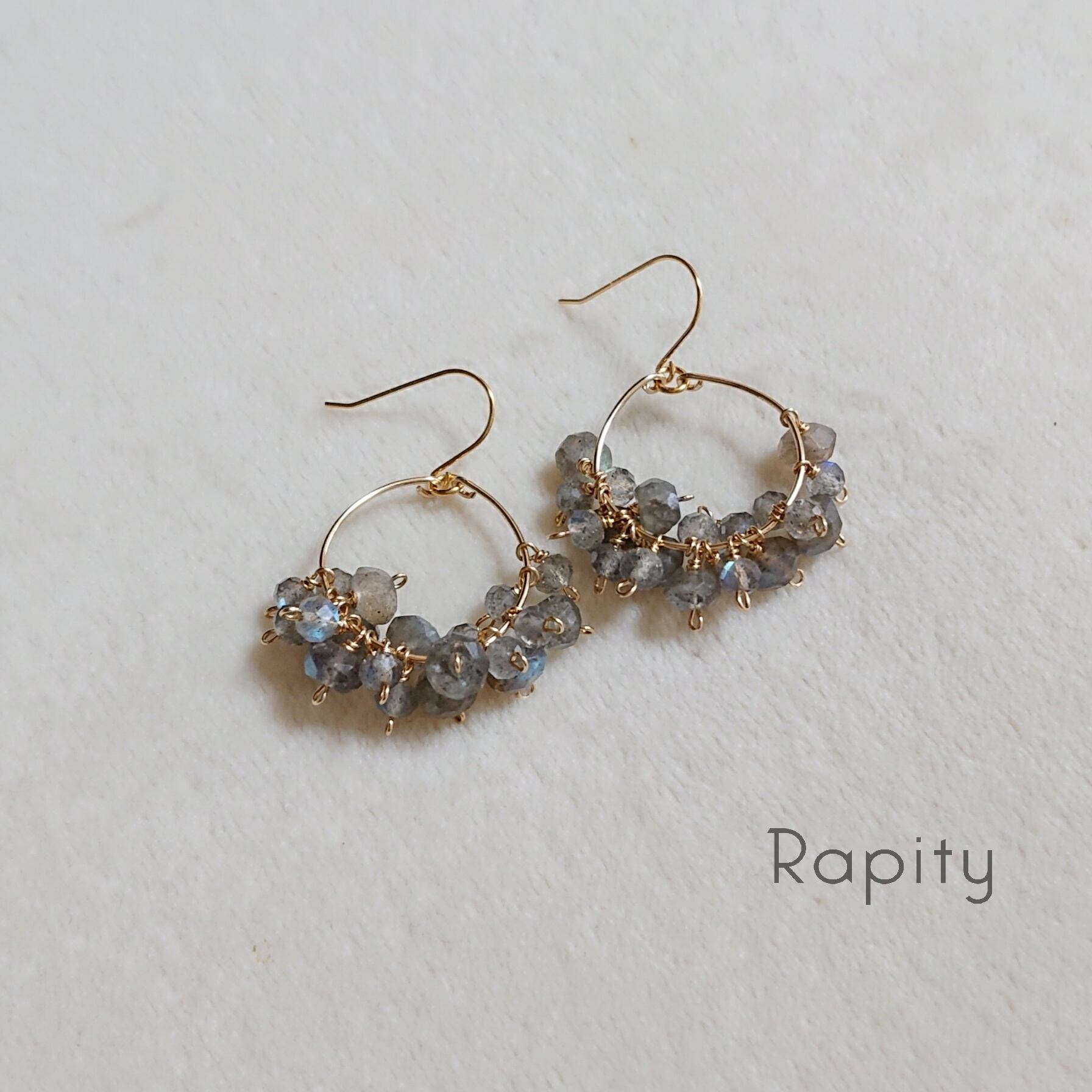 天然石ラブラドライトの大小をミックスした上品で贅沢なフープピアスです。