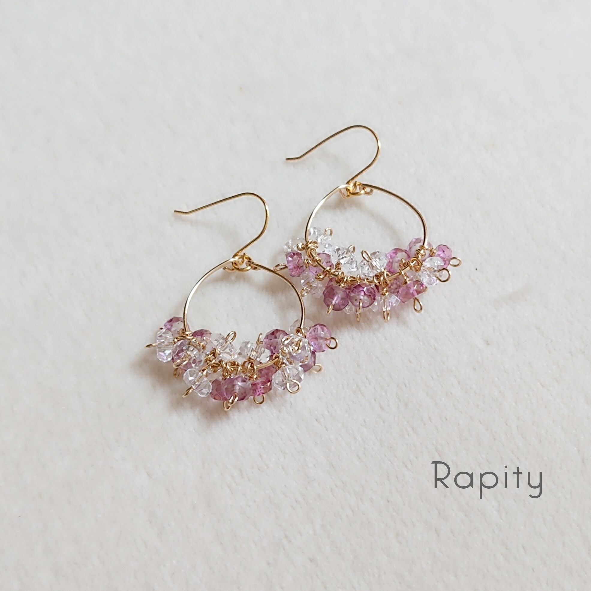 天然石ピンクトパーズと天然石クォーツをミックスしたとても上品で贅沢なフープピアスです。