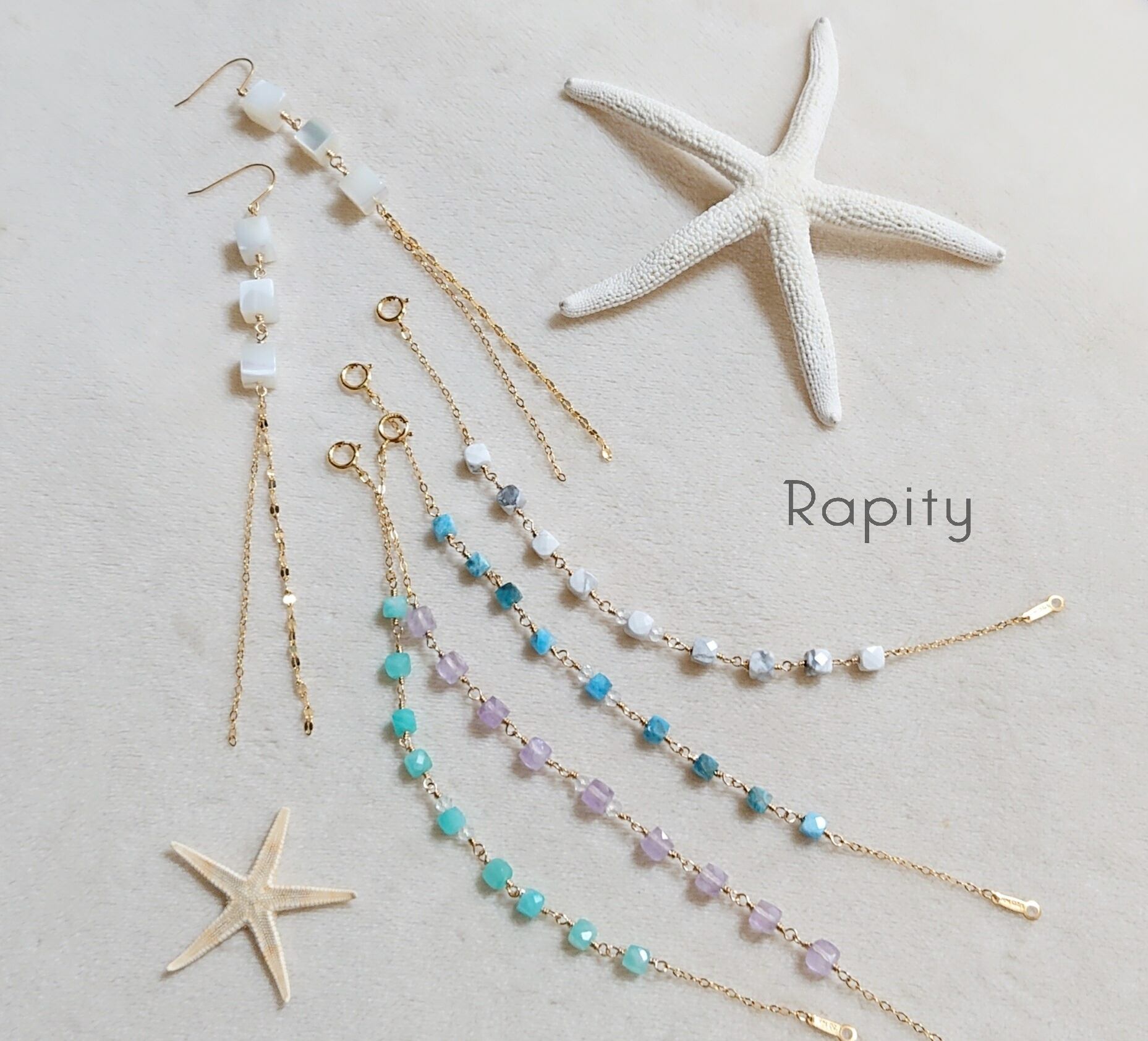 4mmのコロンとした可愛いキューブの中心には3mmの天然石ホワイトトパーズを合わせてます。