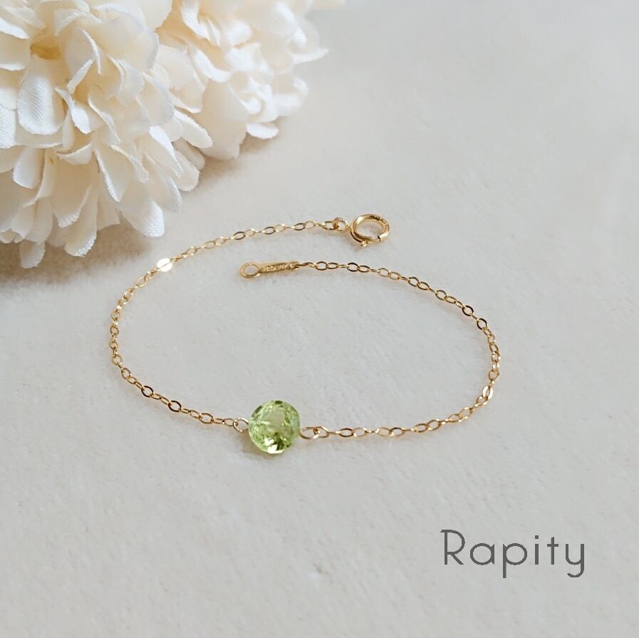 8月誕生石★14kgf 宝石質ペリドット 一粒ブレスレット(ブリリアンカット)