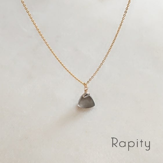 月の満ち欠けの影の部分を象徴すると言われている天然石グレームーンストーンのトリリアンカットされたネックレスです。