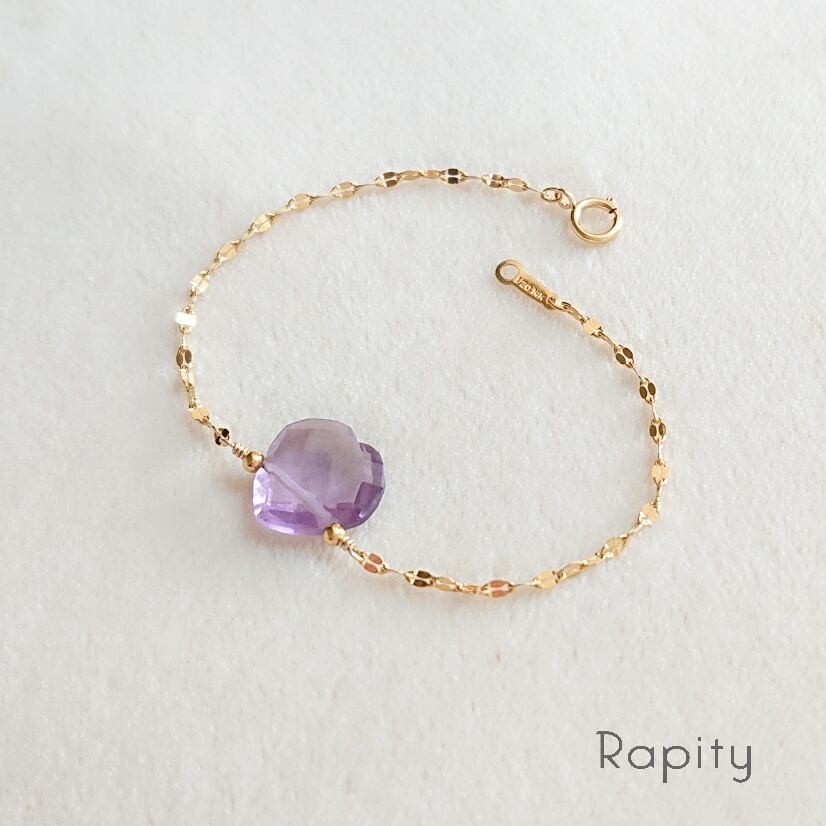 14kgf☆天然石ラベンダーアメジスト ハート型ブレスレット