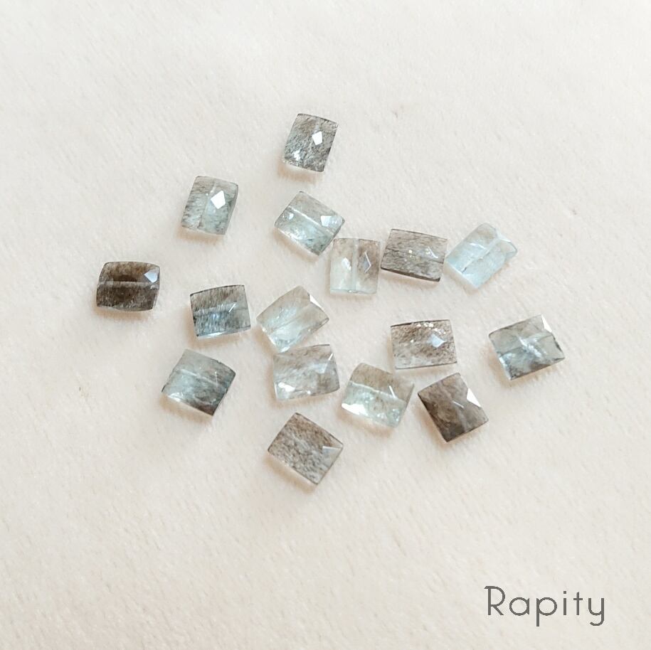 スクエア型のモスアクアマリンとハーキマーダイヤモンド原石を合わせた小ぶりのピアスです。