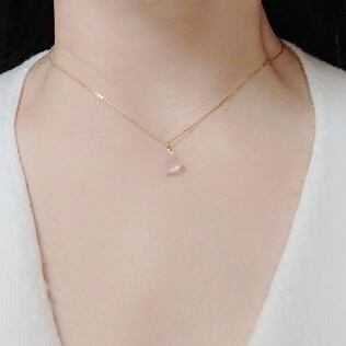 ぷっくりとした三角にカットされた透明感のある愛らしいローズクオーツは一粒でも存在感があります。