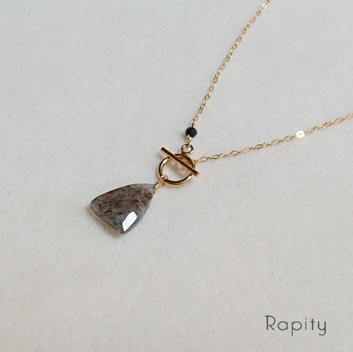 トライアングルカットされたブラックルチルのマンテルネックレスです。