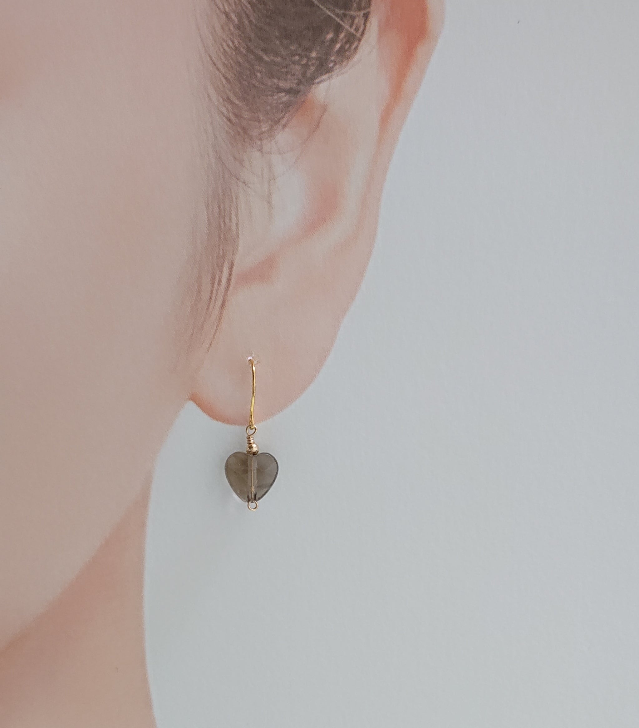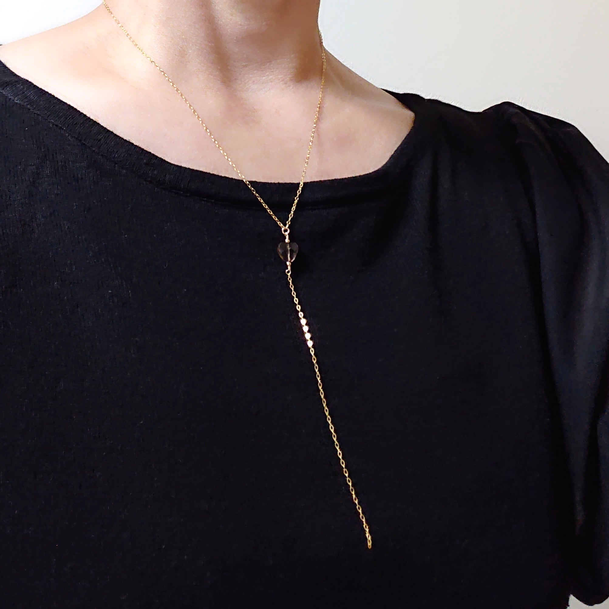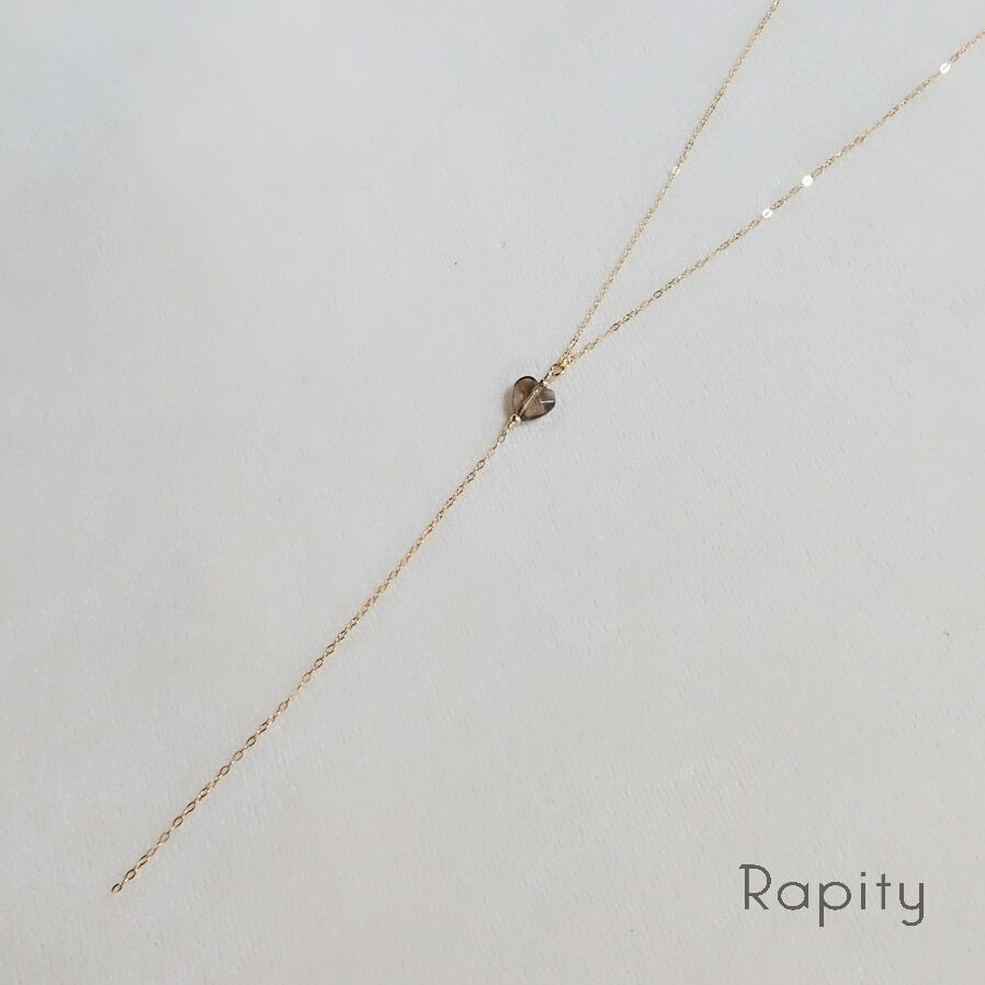 上品で愛らしいハート型の天然石スモーキークォーツのY字ロングネックレスとノンホールピアスorピアスです。