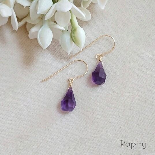 14kgf☆天然石アメジスト(ラフドロップカット)ピアス