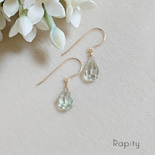 14kgf☆天然石グリーンアメジスト(ラフドロップカット)ピアス