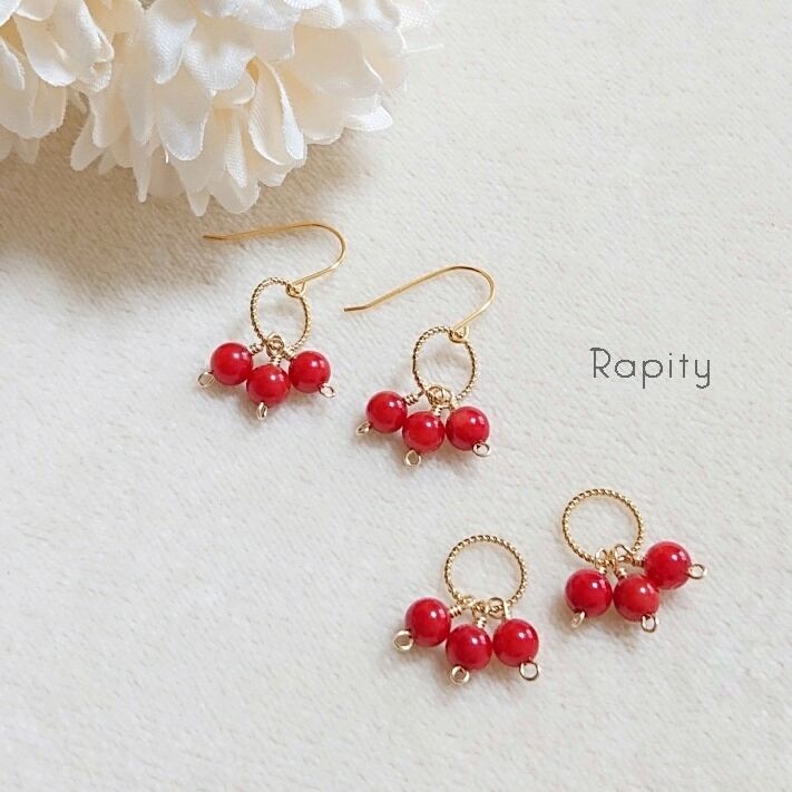 華やかな赤珊瑚がとても愛らしいピアスです。