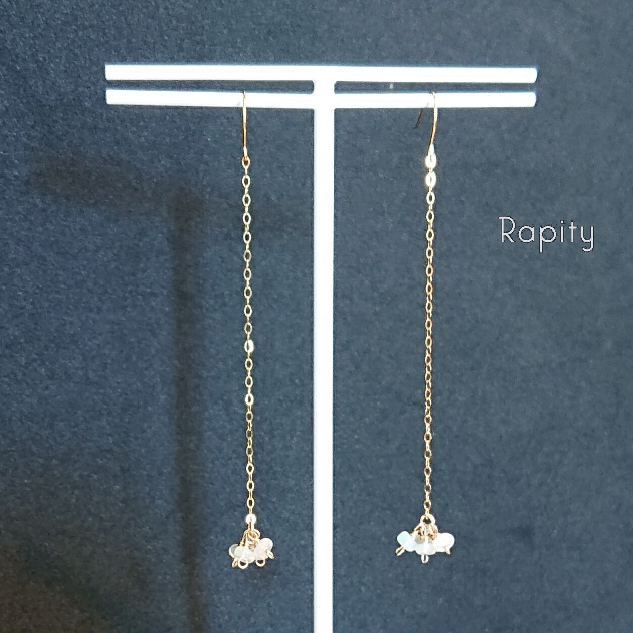 耳元でゆらゆらきらきらと揺れ、とても大人可愛いピアスです。